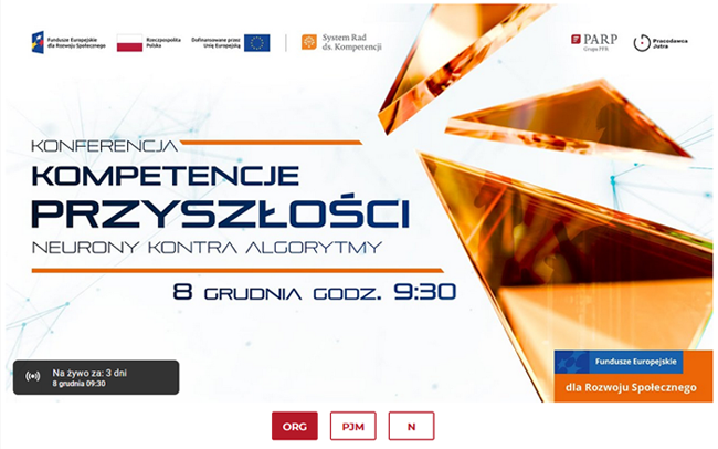 Polska Agencja Rozwoju Przedsiębiorczości zaprasza na konferencję on-line „Kompetencje przyszłości. Neurony kontra algorytmy”, która odbędzie się 8 grudnia 2025 roku w godzinach 9:30–14:10.