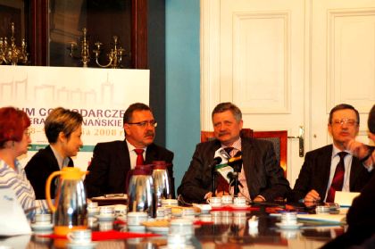 Współorganizatorzy Forum gospodarczego aglomeracji poznańskiej (od lewej): Jan Grabkowski, Starosta poznański, Jerzy Stępień, zastępca prezydenta Poznania, Wojciech Kruk, Prezydent Wielkopolskiej Izby Przemysłowo-Handlowej