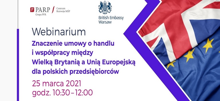 Webinarium „Znaczenie umowy o handlu i współpracy między Wielką Brytanią a Unią Europejską dla polskich przedsiębiorców” odbędzie się 25 marca 2021 (godz. 10.30-12.00).