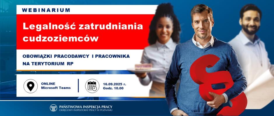 Państwowa Inspekcja Pracy zaprasza 16 września o godz. 10:00 do udziału w bezpłatnym webinarium poświęconym zagadnieniom związanym z legalnością zatrudniania cudzoziemców na terytorium Rzeczypospolitej Polskiej.